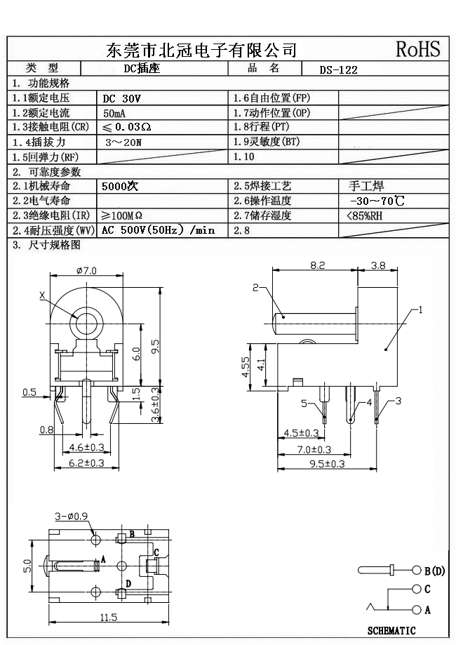 Typical Specifications 1. Rating : DC 30V 0.5A 2. Contact Resistance : 70ΩMax 3.Lnsulation Resistance: DC500V 1Minute 4.Operating Temperature Range: -25℃+80℃ 5.Ambient Humidity Used: ≤85%RH 6. Operating Force : 3-20N 7. Operating Life : 5,000Cycles