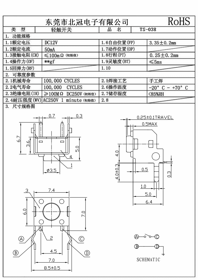 產(chǎn)品名稱:TS-038輕觸開關(guān)