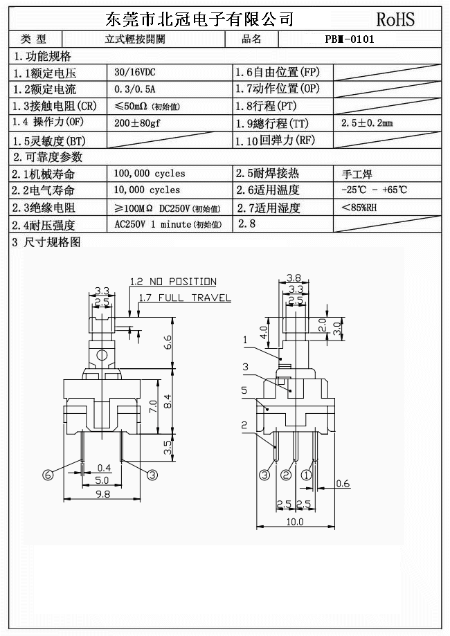 產(chǎn)品名稱(chēng):PBM-0101按鍵開(kāi)關(guān)