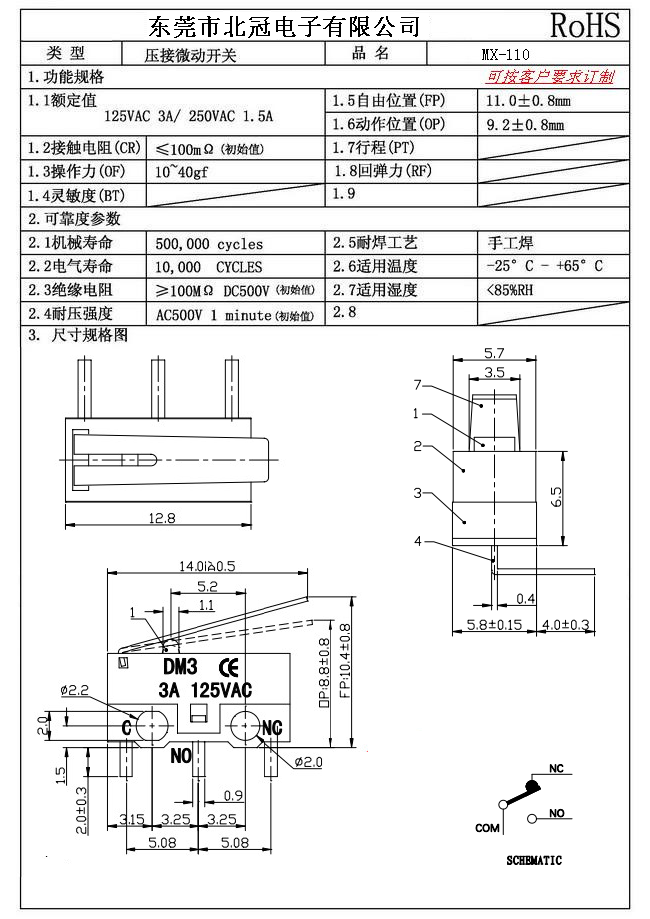 3.Lnsulation Resistance: ≥100mΩ DC500V