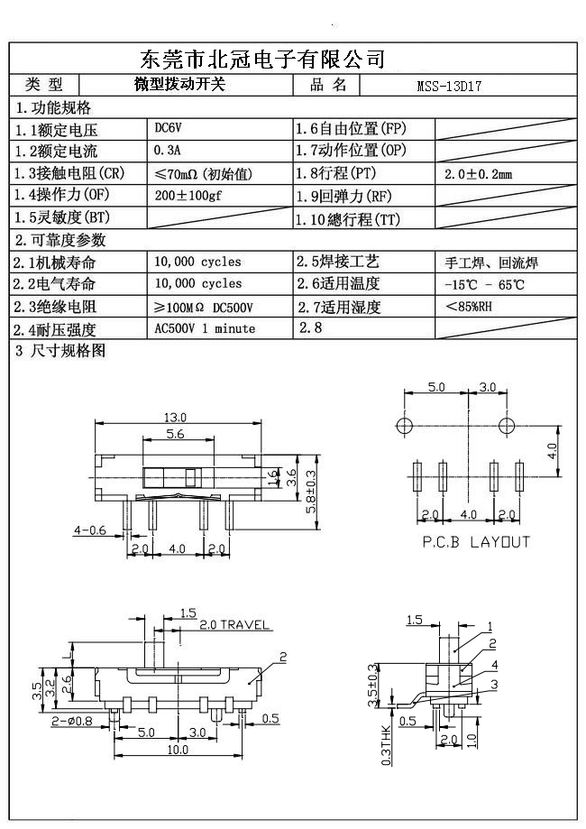 MSS-13D17撥動開關(guān)