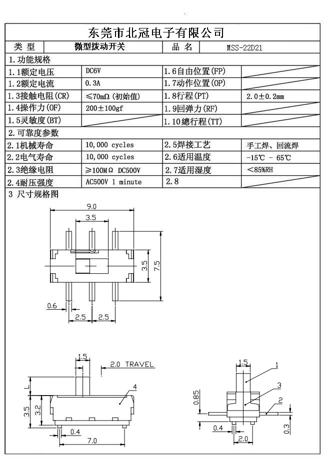 產(chǎn)品名稱:MSS-22D21撥動開關(guān)