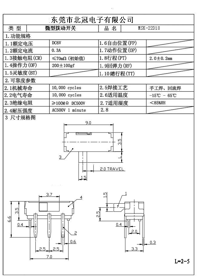 產品名稱:MSK-22D18撥動開關