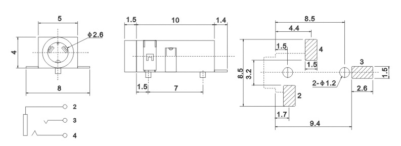 產(chǎn)品名稱(chēng):PJ-208 品名:2.5耳機(jī)插座 |