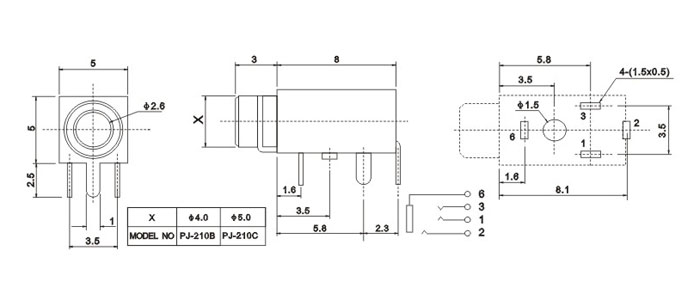 產(chǎn)品名稱:PJ-210C 品名:2.5耳機插座 |