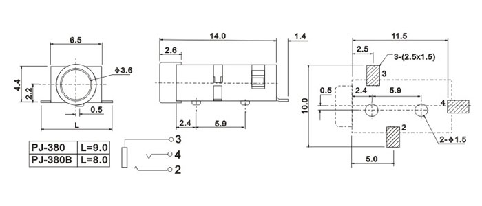 產(chǎn)品名稱:PJ-380 品名:3.5耳機(jī)插座 |