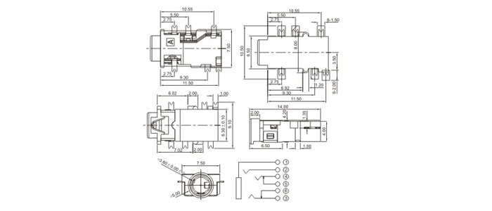 產(chǎn)品名稱:PJ-3106C 品名:3.5耳機(jī)插座 |
