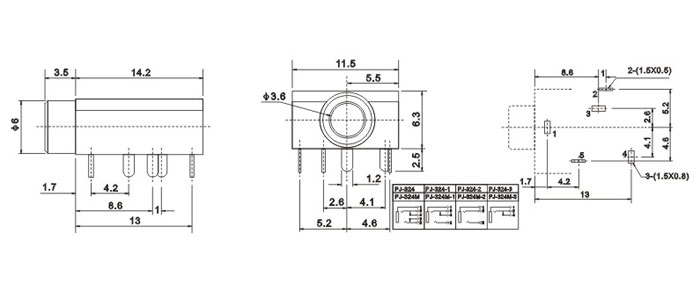 產(chǎn)品名稱:PJ-324M 品名:3.5耳機(jī)插座 |
