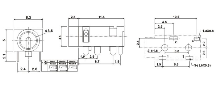 產(chǎn)品名稱:PJ-327 品名:3.5耳機插座 |