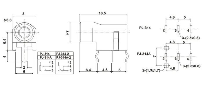 產(chǎn)品名稱:PJ-314 品名:3.5耳機(jī)插座 |
