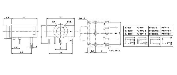 產(chǎn)品名稱:PJ-307 品名:3.5耳機(jī)插座 |