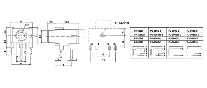 產(chǎn)品名稱:PJ-306EM 品名:3.5耳機插座 |
