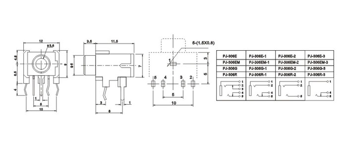 產(chǎn)品名稱:PJ-306E 品名:3.5耳機(jī)插座 |