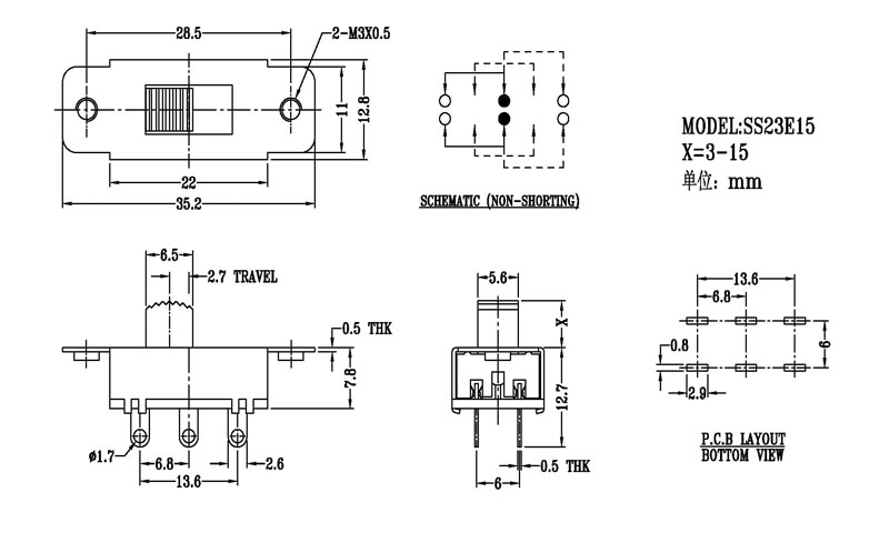 SS-23E15撥動(dòng)開關(guān)